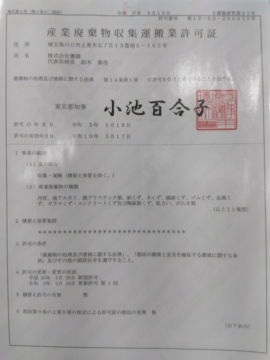 終わり、東京都については既に新しい許可証も届きました。